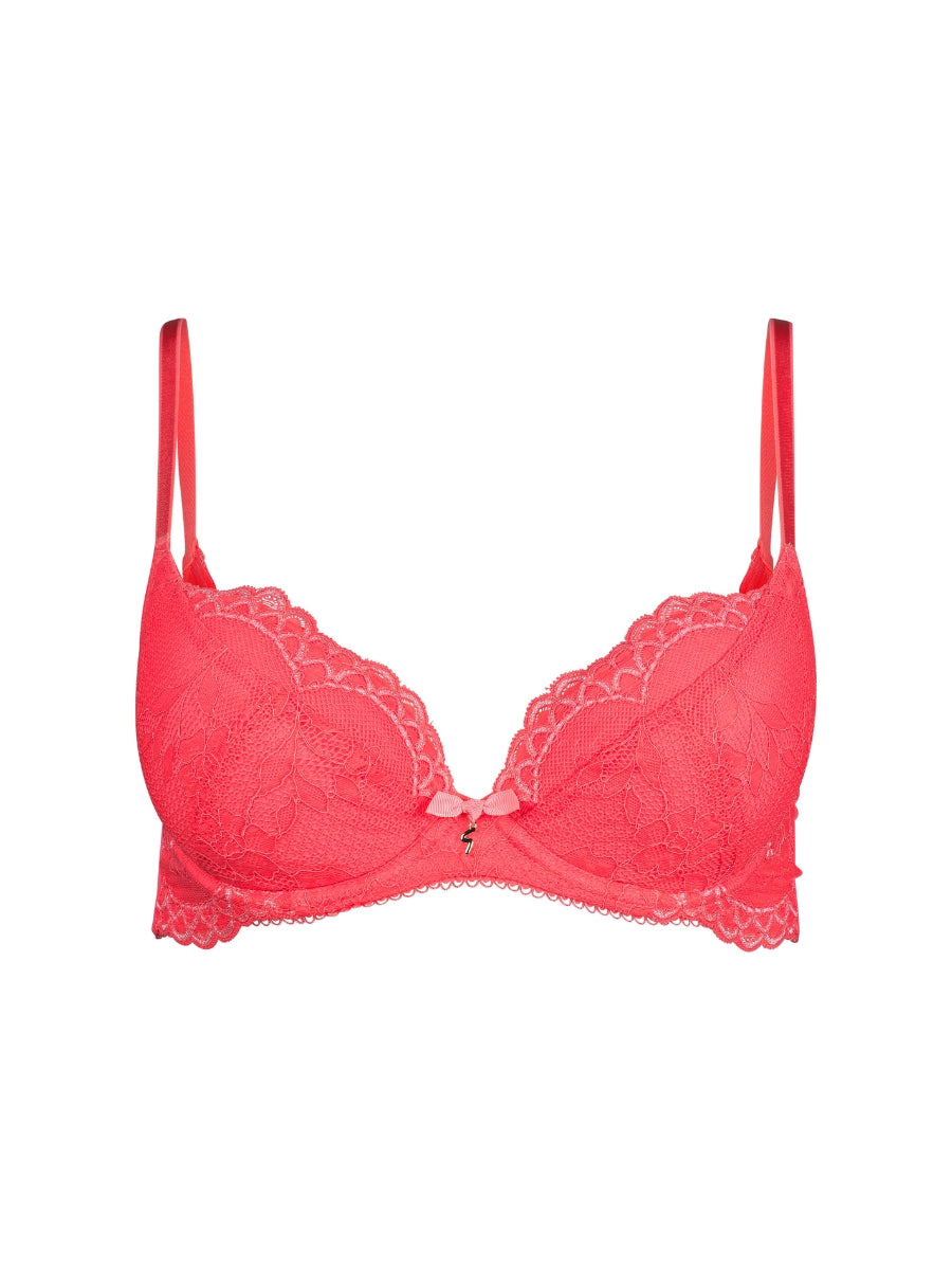 Fashioned from beautiful corded stretch lace is Gossard's Superboost Lace Padded Plunge Bra in Sugar Coral.