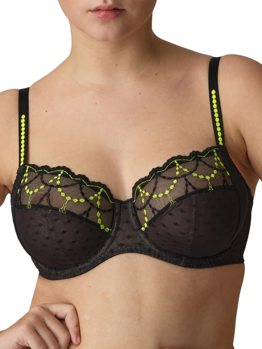 Introducing the Tepito Full Cup Bra from the luxurious PrimaDonna brand, part of their exclusive Twist range. With full coverage and non-padded support, this underwired bra is both comfortable and stylish. Featuring intricate embroidery and vibrant neon highlights, it's guaranteed to make you glow.